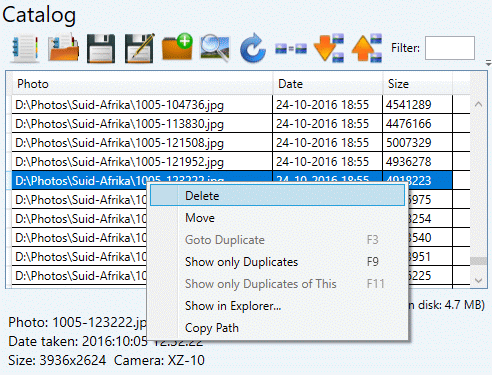 . Alternatively, you can use the F5 and F6 key. When you right-click a photo that has one or more duplicates, a pop-up menu will open, from which you can choose between these options: