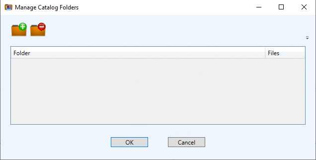 Click the button and select a folder that contains photo files. Repeat this for all (top-level) folders that contain photos. After adding the folders you wish to include in the catalog, click OK.